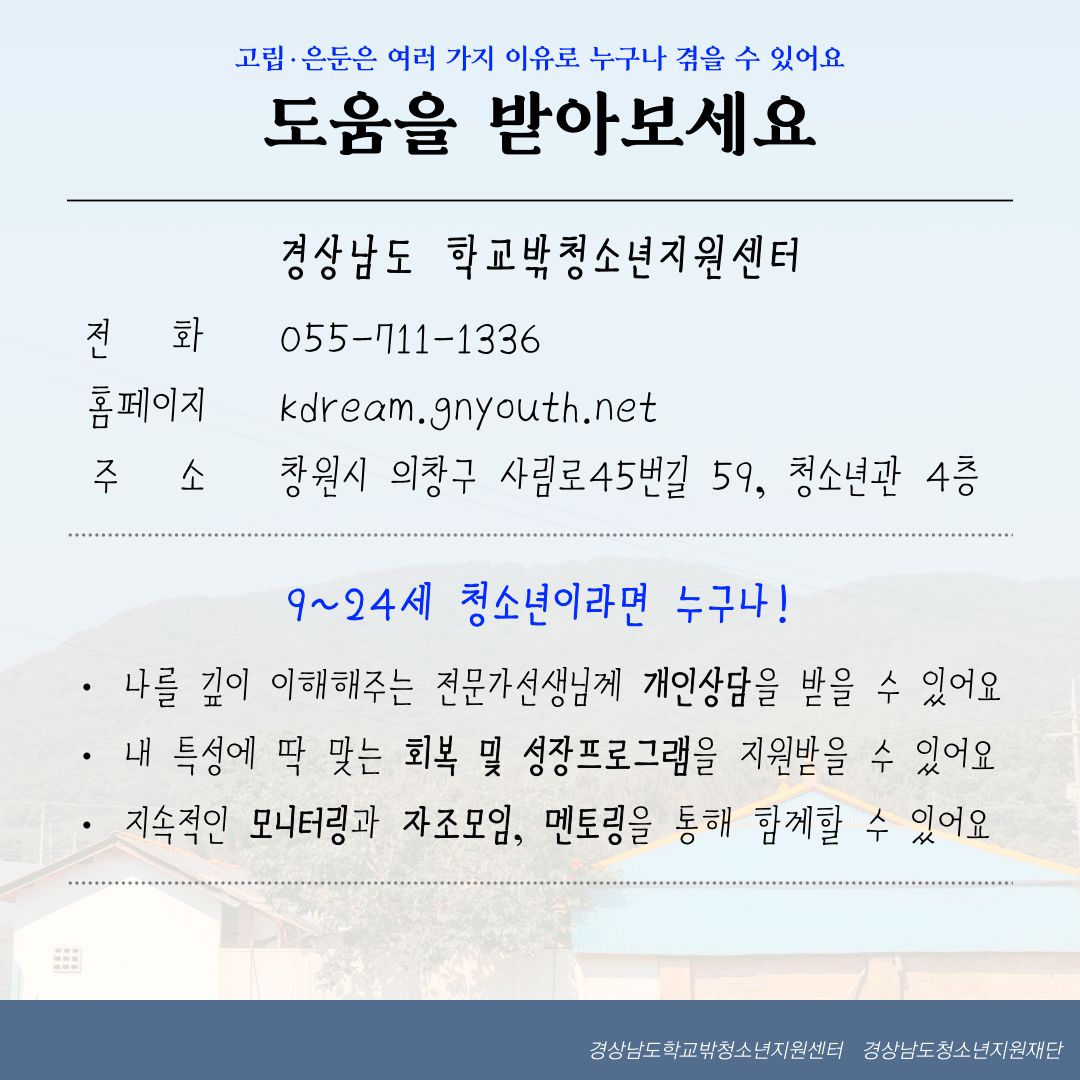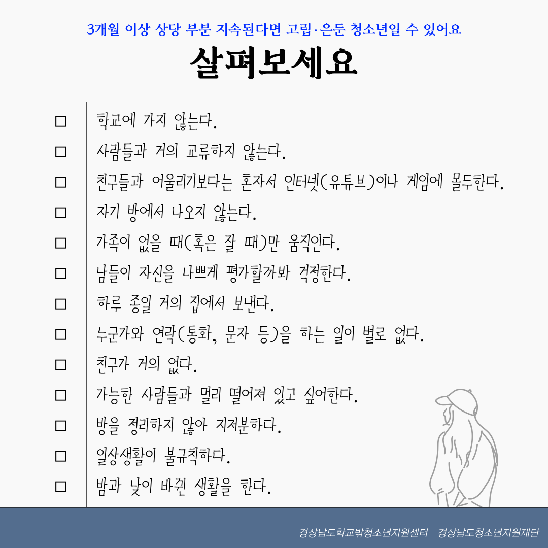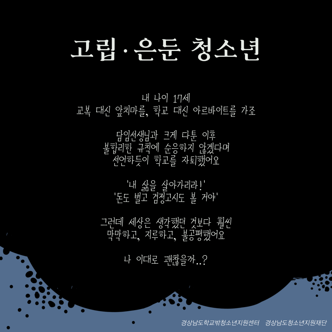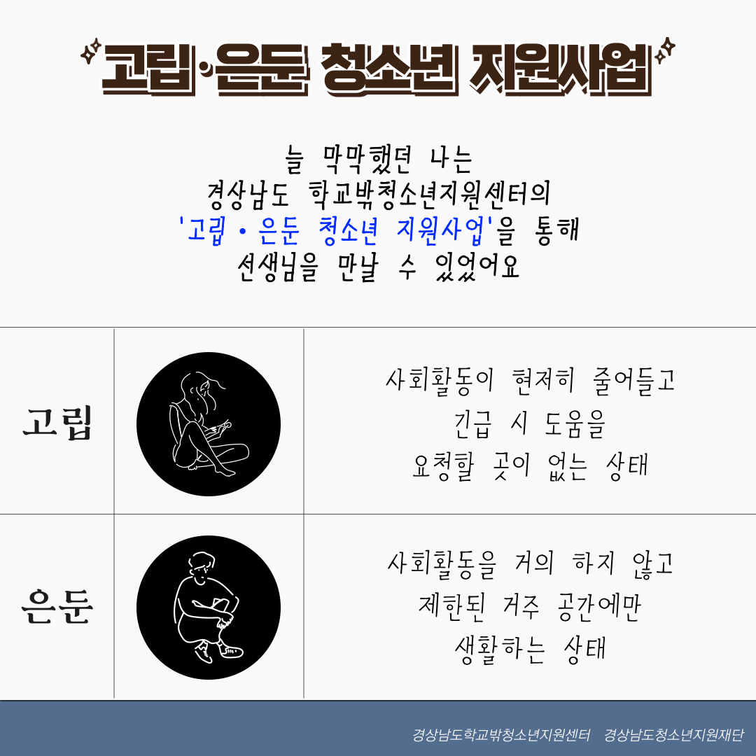 본 카드뉴스는 경상남도 고립은둔 청소년 지원사업의